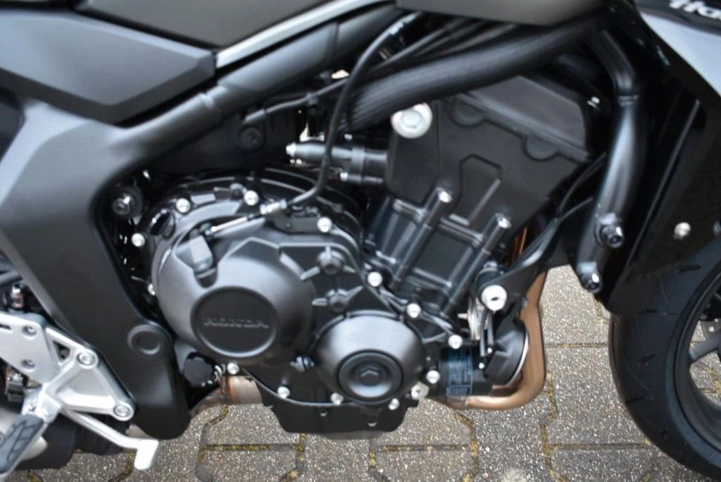 Die Hornet-Familie ist jetzt vollständig und unser Topmodell sticht heraus. Die neue CB1000 Hornet mit ihrem Vierzylindermotor ist ein erstklassiges Naked Bike, das den Asphalt zum Glühen bringt. Throttle By Wire sorgt für präzise Kontrolle, während das Fahrwerk mit der einstellbaren SHOWA 41mm SFF-BP Upside-Down-Gabel und dem Pro-Link-Federbein ausgestattet ist. Die unverfälschte, aggressive Streetfighter-Attitüde wird durch einen markanten LED-Doppelscheinwerfer unterstrichen. Das 5-Zoll TFT-Farbdisplay und die Honda RoadSync-Konnektivität sorgen für die nötigen Informationen.