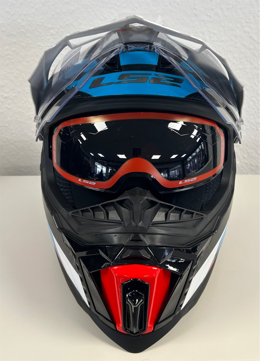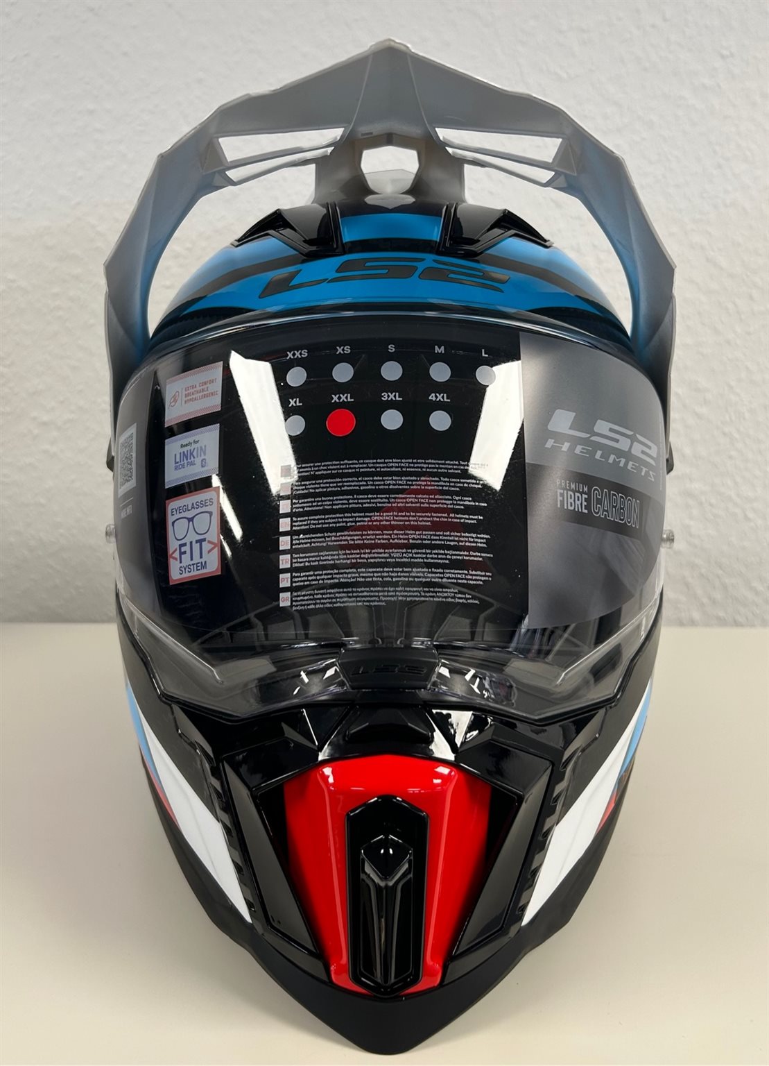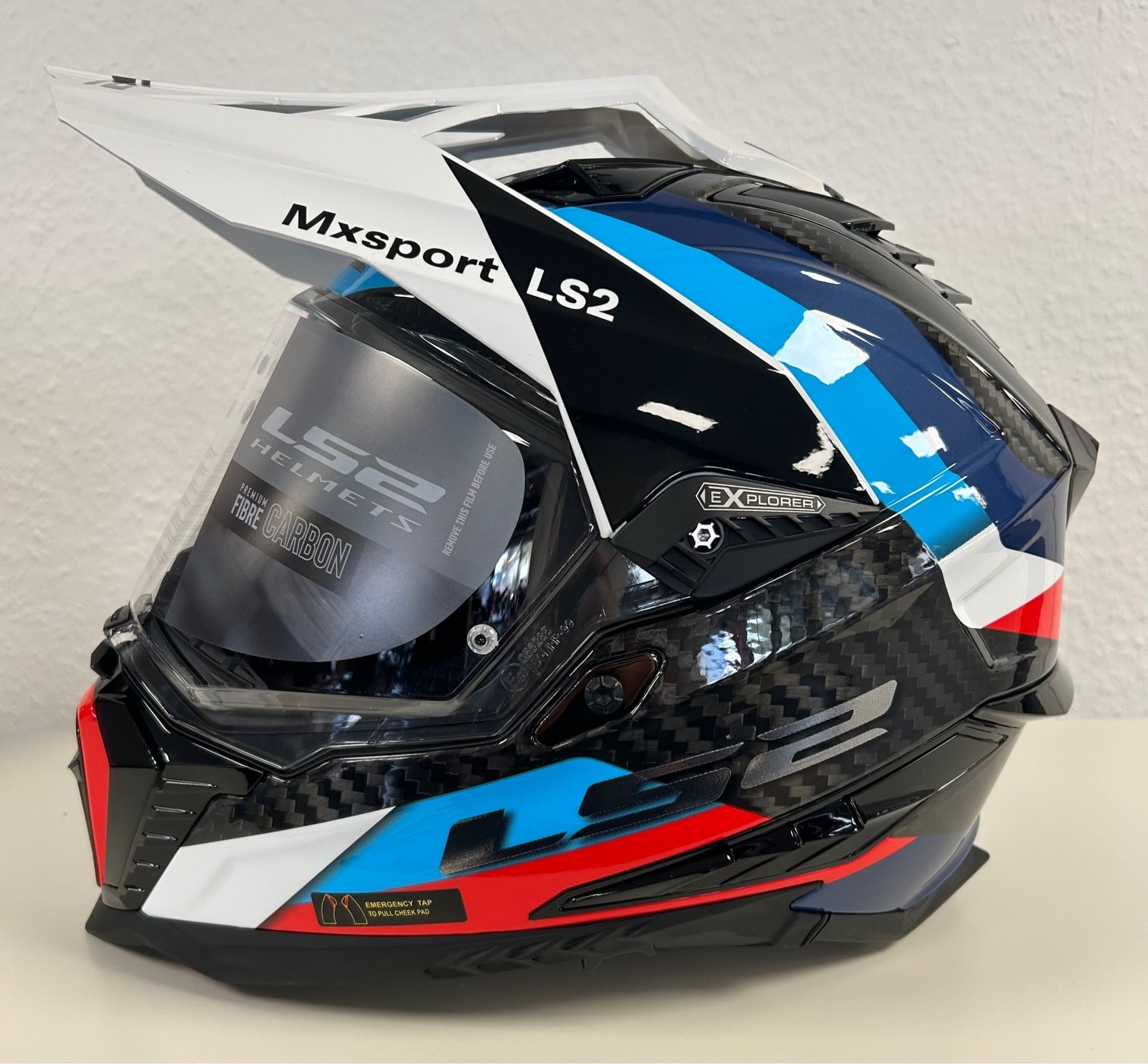 Endurohelm von LS2 C Explorer Frontier, in Carbon, weiß, blau. Größe XXL. Normalpreis 449,-€ jetzt für 249,-€