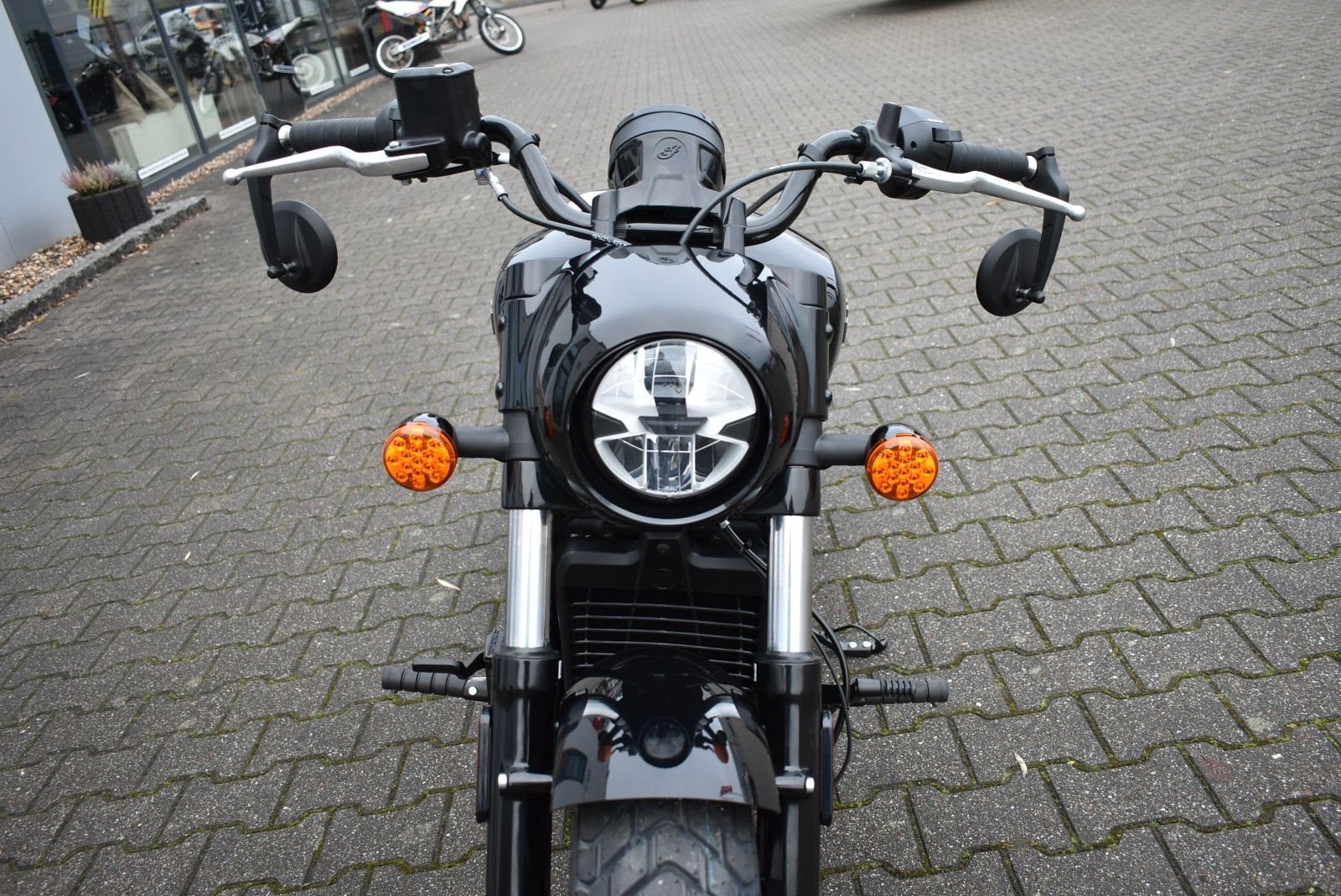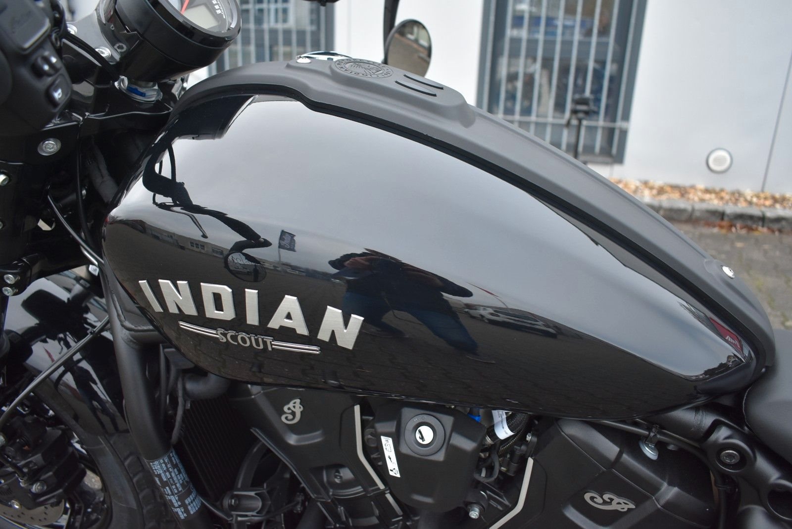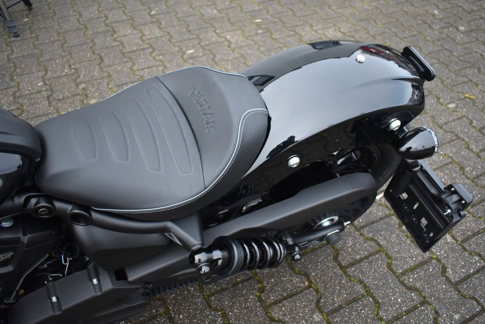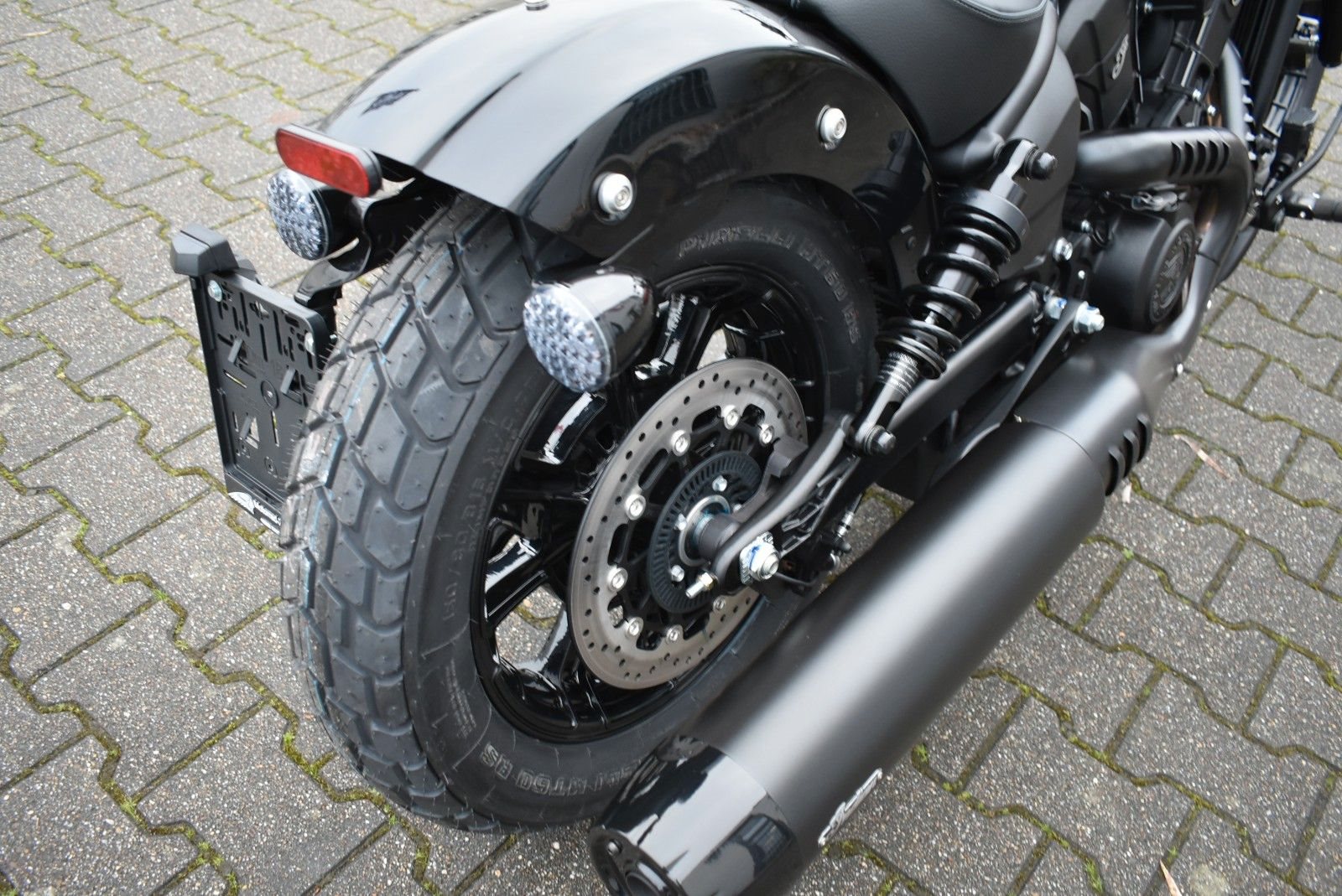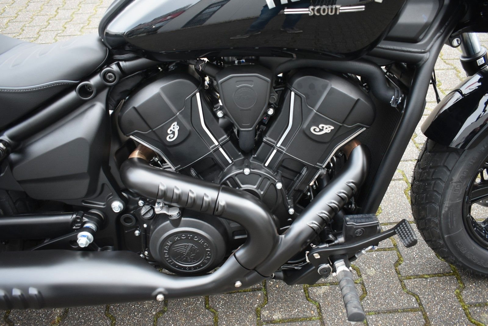 Von vorne bis hinten geschwärzt, mit gechoppten Bobber-Kotflügeln und Scheinwerfergondel, lehnt sich die Scout Bobber hart an den authentischen Bobber-Stil an.
