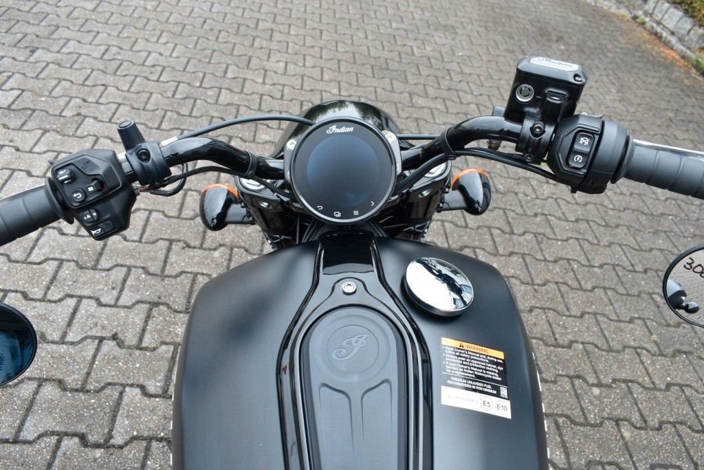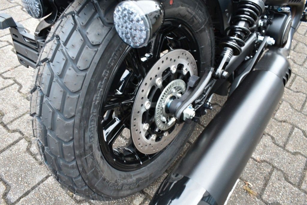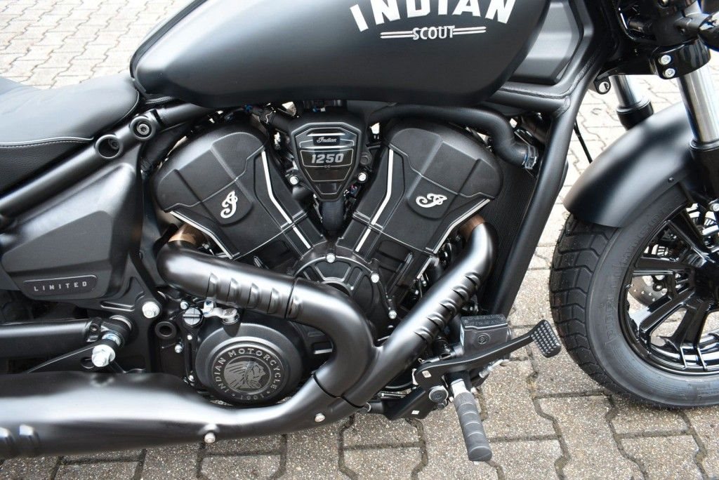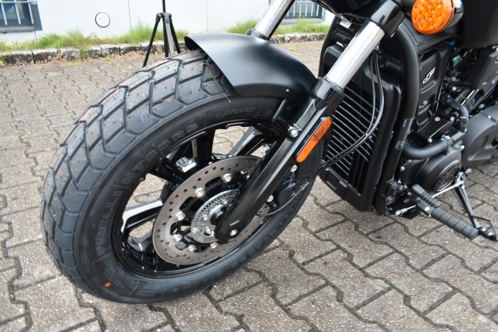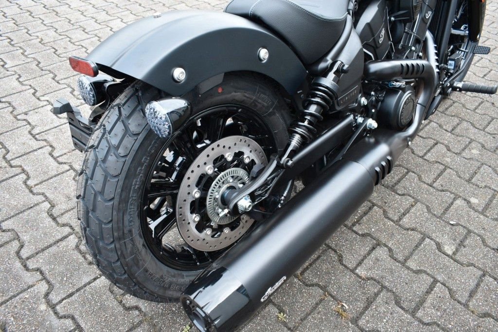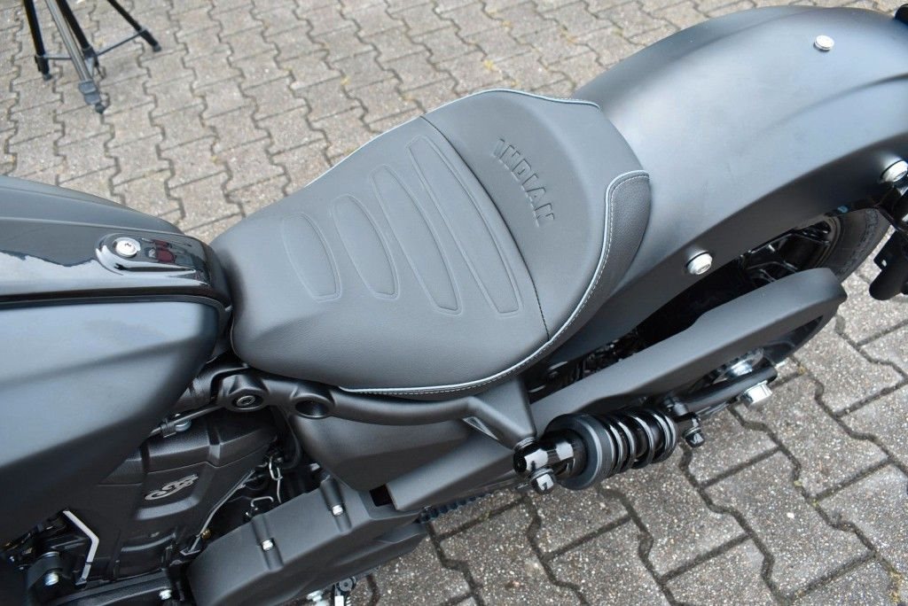 Von vorne bis hinten geschwärzt, mit gechoppten Bobber-Kotflügeln und Scheinwerfergondel, lehnt sich die Scout Bobber hart an den authentischen Bobber-Stil an.