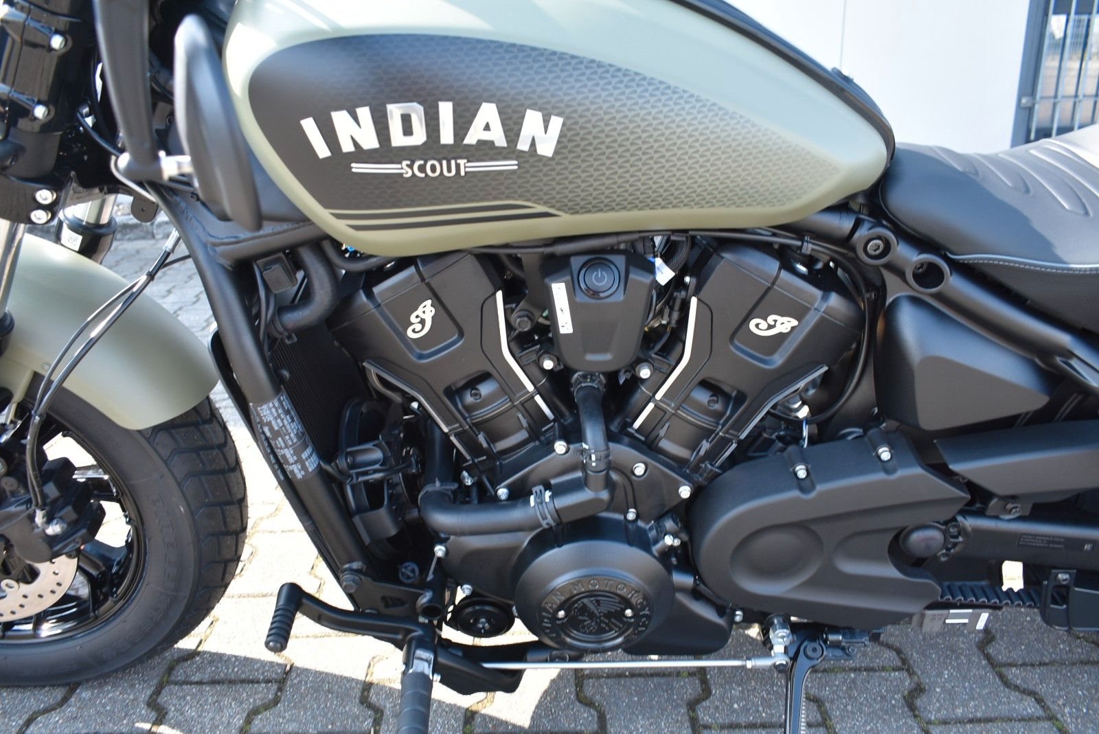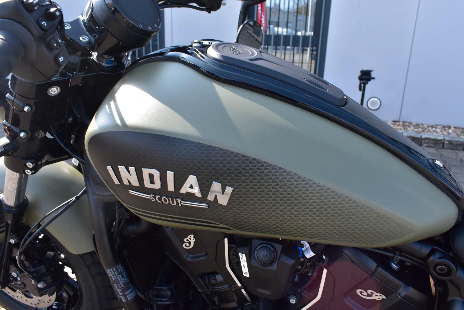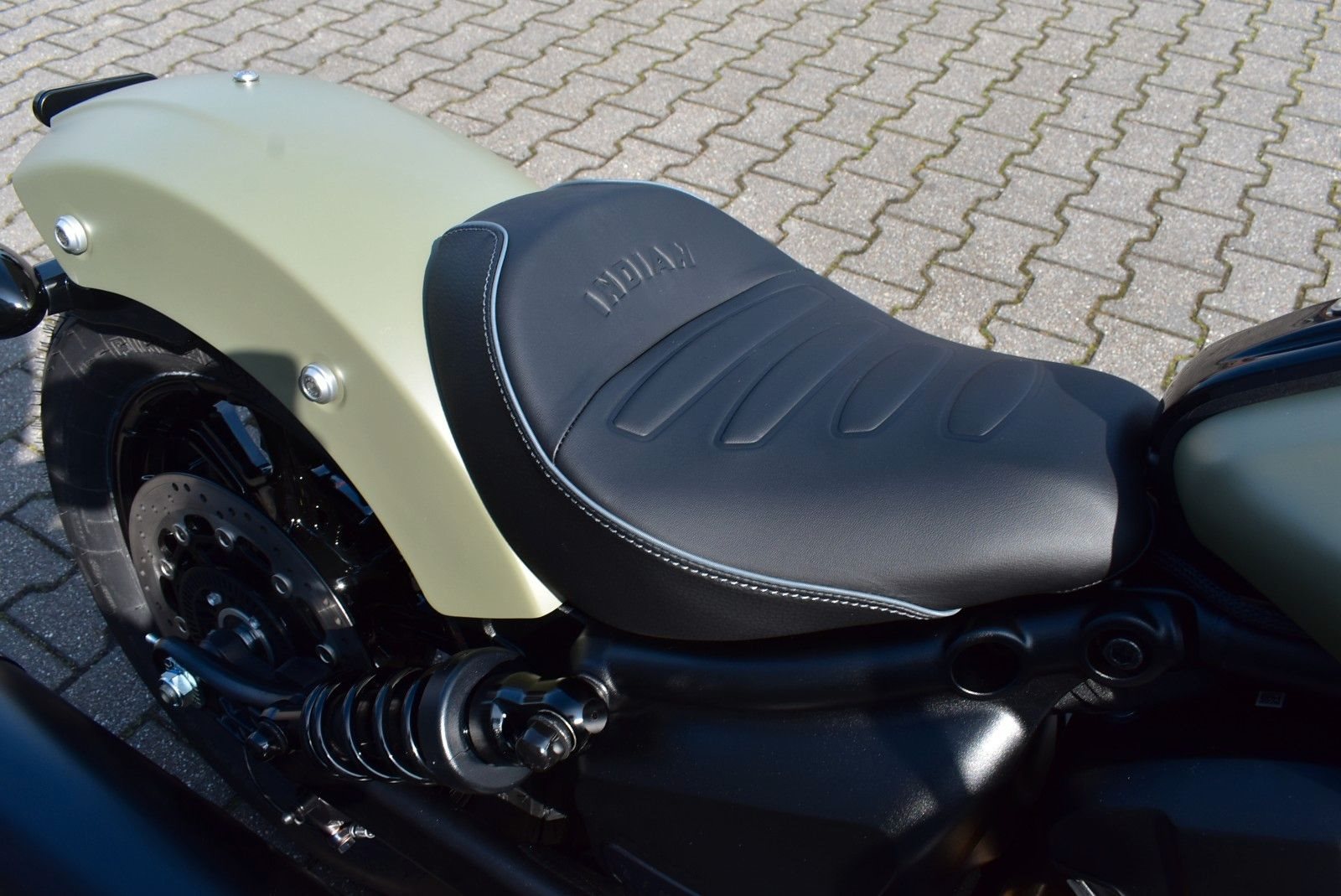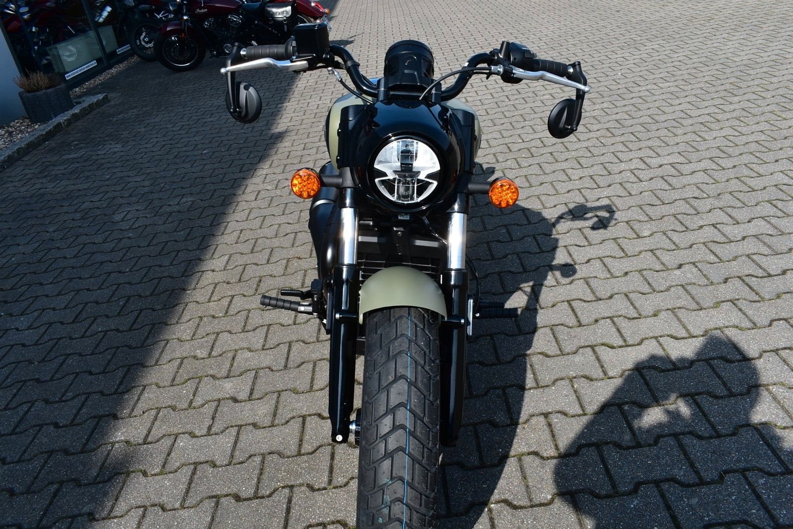 Von vorne bis hinten geschwärzt, mit gechoppten Bobber-Kotflügeln und Scheinwerfergondel, lehnt sich die Scout Bobber hart an den authentischen Bobber-Stil an.