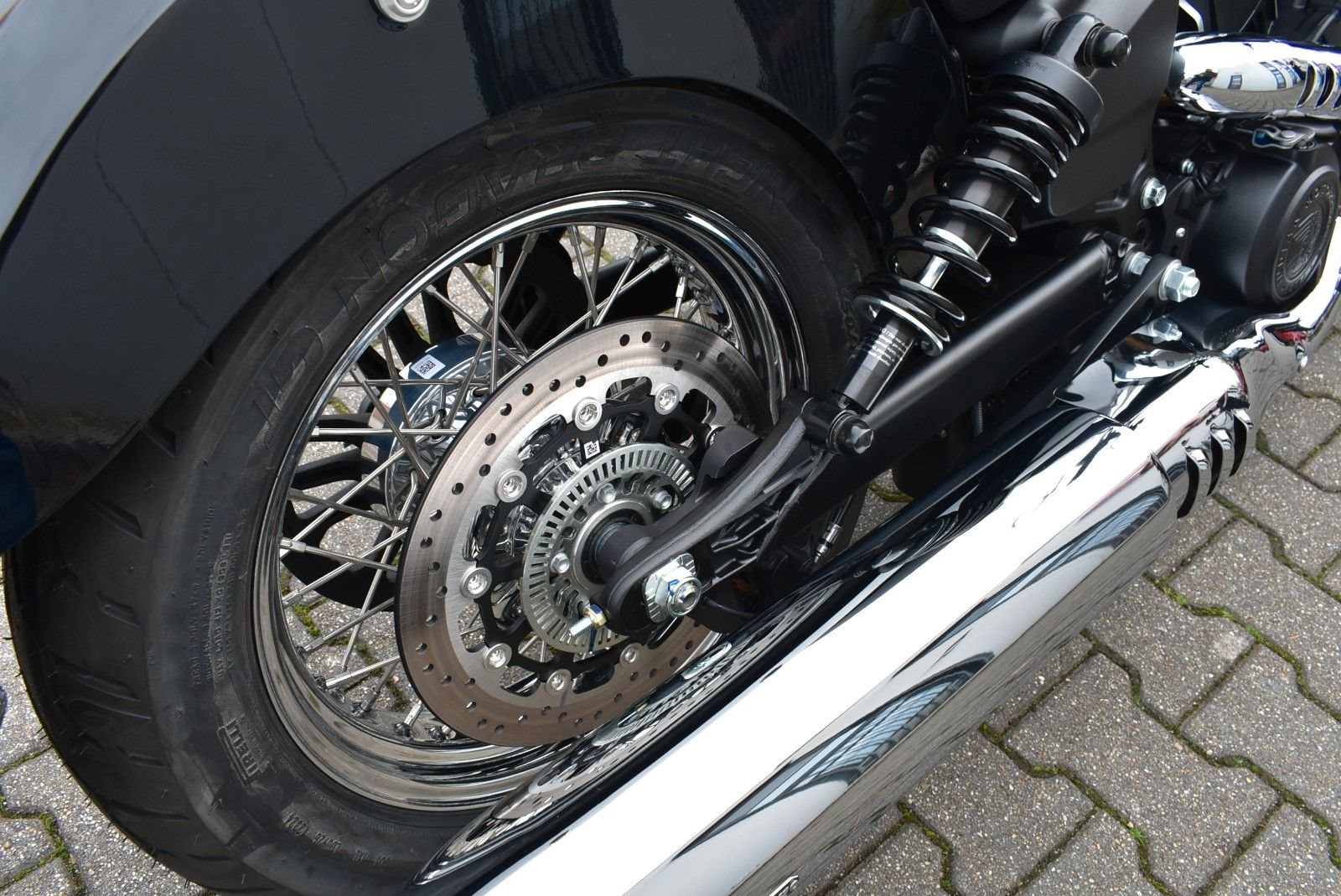 Hochwertiges Chrom, die klassischen, ausgestellten Kotflügel von Indian Motorcycle und die makellose Lackierung ziehen an jeder Kreuzung die Blicke auf sich. Drahtreifen unterstreichen den zeitlosen, authentischen Stil.